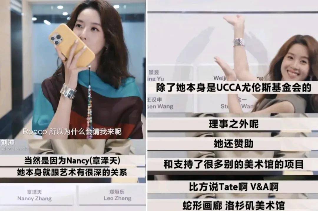 这两年,章泽天着重发力艺术领域。她加入了五个美术馆的赞助人计划,其中包括Tate和V&A这些在艺术界具有极大影响力的艺术机构,以及世界顶级艺博会Frieze的母公司,还是UCCA尤伦斯艺术基金会理事。