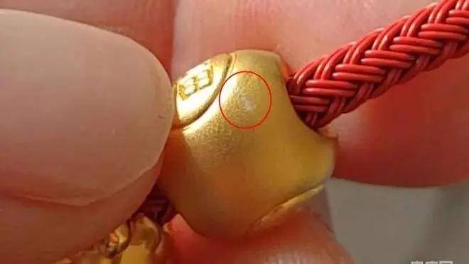 然而,根据李女士向媒体的描述,这份期待很快就被现实击碎,品牌信任也随之崩塌:佩戴这款足金福袋挂坠仅仅一天时间,她就发现挂坠表面出现刮花痕迹,更令她意外的是,刮花处竟露出了明显的白色印记。