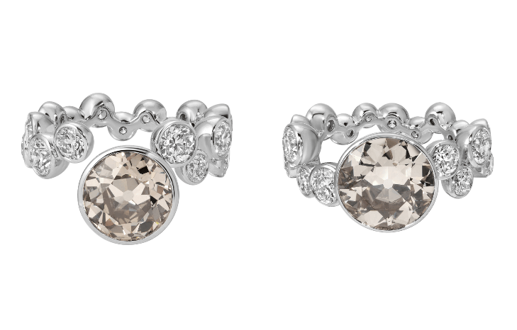 Emily P. Wheeler镶嵌干邑色马眼形钻石“扭纹”系列戒指与同色系沙漠钻石气泡流苏耳环