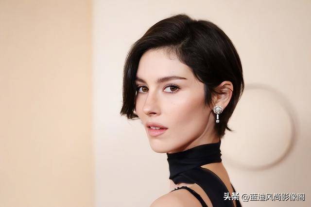 配饰的选择,更是精准踩中了 “点睛不抢戏” 的分寸。CHANEL 臻品珠宝 1.5 系列 DIAMANT ESSENTIEL耳环,以简约利落的钻石线条,点缀在她利落的短发旁,细碎的钻光恰好提亮了面部轮廓,与上衣的刺绣光泽形成呼应,却没有丝毫喧宾夺主的意味。整套造型没有多余的装饰,全靠极致的面料质感、精准的剪裁设计,与她本人的气质相辅相成,完美诠释了什么叫 “简约即高级”。