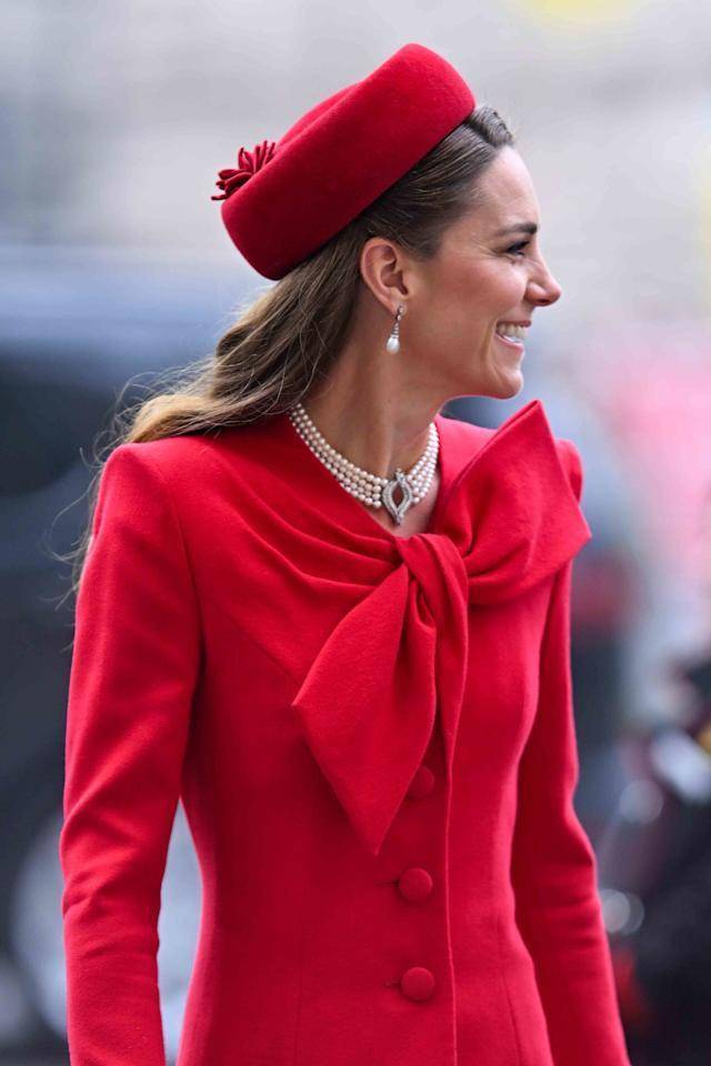 卡米拉穿了一身极其扎眼的亮红色,帽子夸张得像一只要飞起来的鸟。时尚评论给面子,说这是“爱国红”;说实话,红得有点用力过猛,像是在拼命强调“我是王后”。