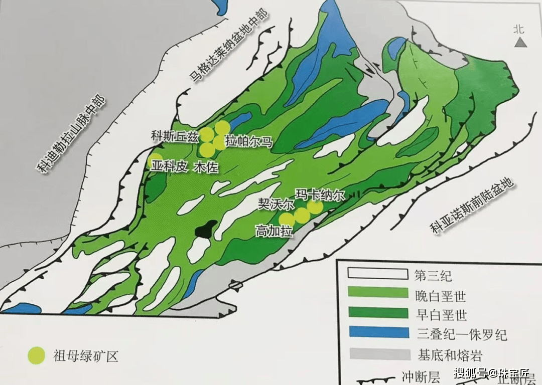哥伦比亚祖母绿矿床主要分布在科迪勒拉山脉东部,目前,最主要的祖母绿矿区有木佐矿、契沃尔矿、科斯奎兹矿和拉帕尔马矿。