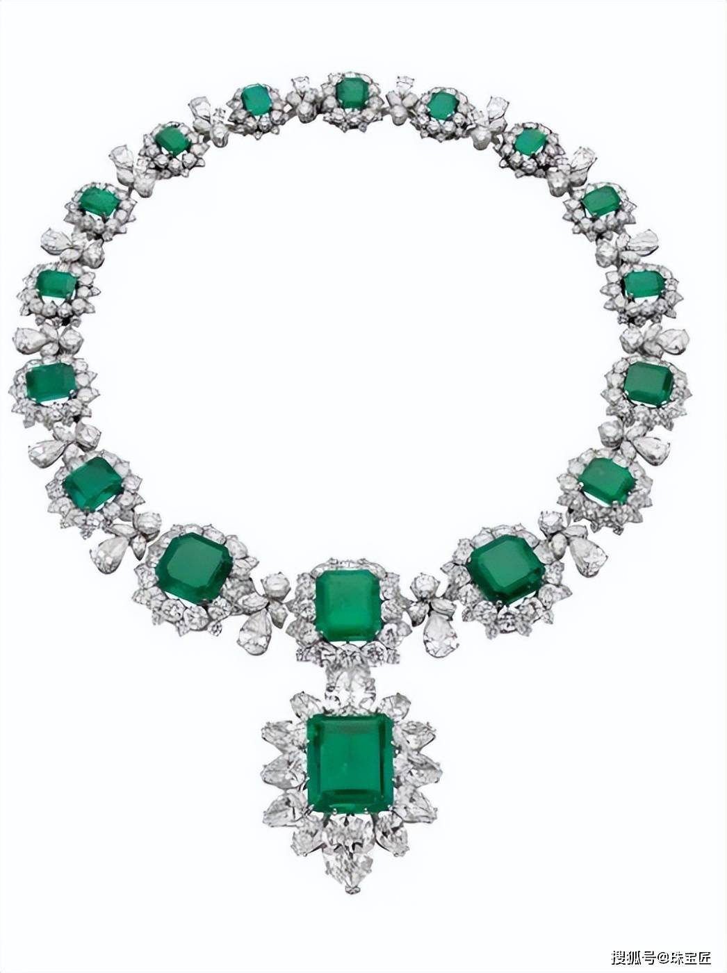和成交价排名第六的祖母绿钻石胸针一样,这条祖母绿钻石项链,同样是理查德·伯顿送给伊丽莎白·泰勒的爱情信物。