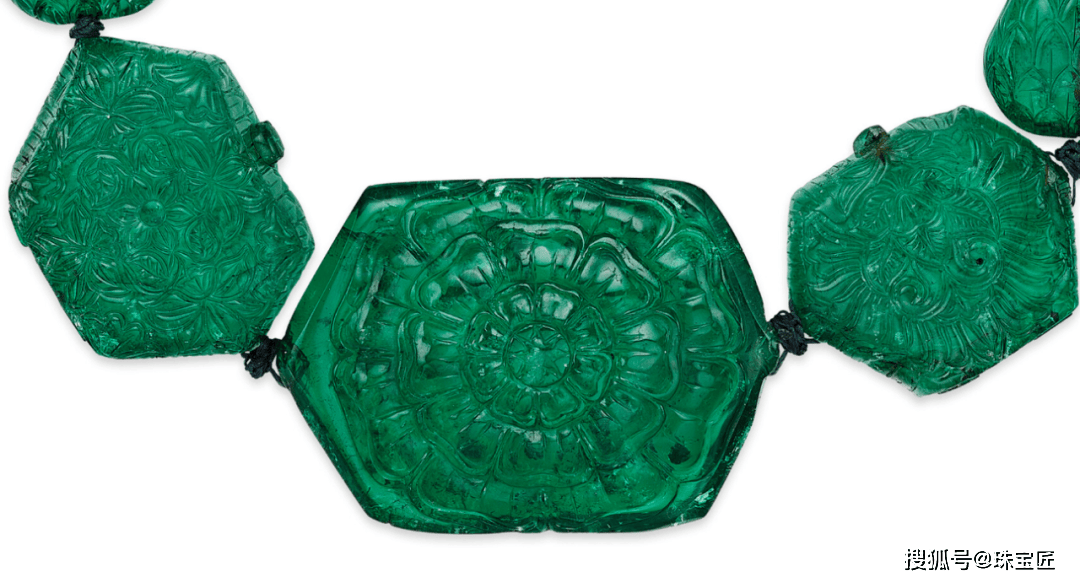位列祖母绿拍卖榜TOP7的雕花祖母绿项链,来自于印度历史上最为重要的王朝:莫卧儿王朝。