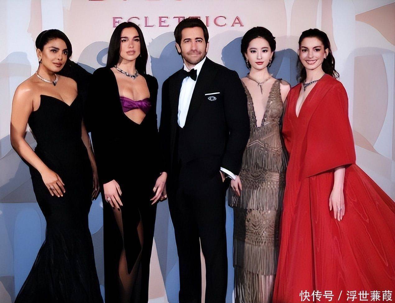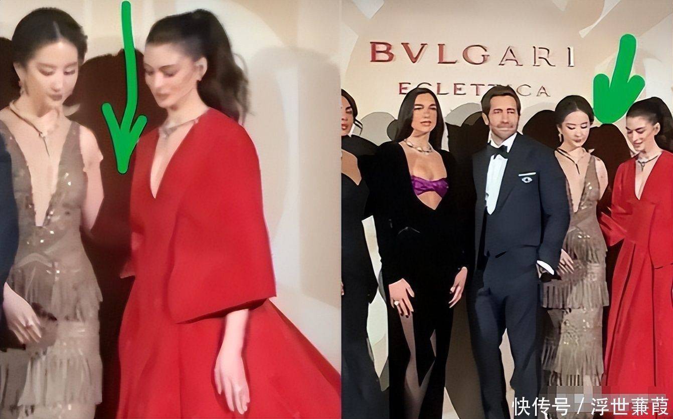 合影环节中,刘亦菲不仅美得醒目夺目,更在发现安妮·海瑟薇站位偏移后,主动伸出手臂轻轻牵引,拉近彼此距离。