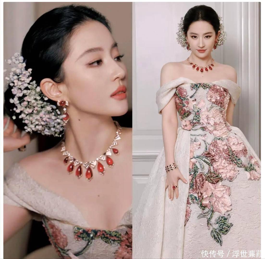 品牌本意借这件天价配饰强化其全球代言人身份的权威性与稀缺感,但当刘亦菲缓步登台,全场目光却不由自主聚焦于她发髻间那一小簇素雅清新的满天星干花之上。