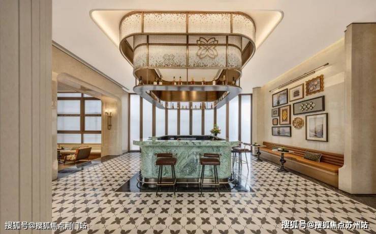 入园大堂正对二进水景中庭,曲折游廊与飞檐景亭合围了一方“四水归堂”的意境,这处借鉴「柳浪闻莺」的布局,经由高端宝格丽奢石点缀,铺陈一片自然青绿。
