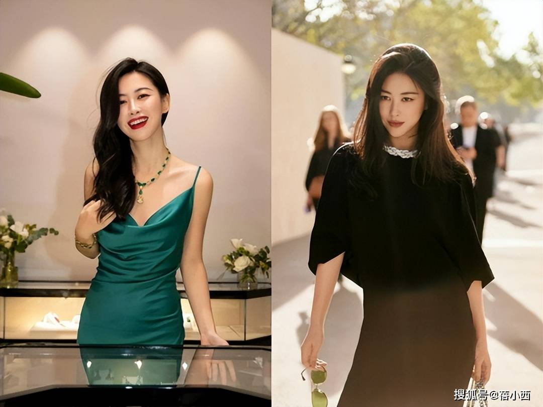 朱珠身材苗条,穿起连衣裙更能展现出她的女性曲线。比如那条绿色连衣裙,复古风格十足,吊带设计让她性感锁骨若隐若现,肩部线条也极具美感。而黑色连衣裙则低调而典雅,尽管颜色沉稳,但凭借其独特的V领设计,拉长了脖部线条,使整个人看起来更为时尚。加上珠宝项链的点缀,整体造型既高贵又不失华丽感。