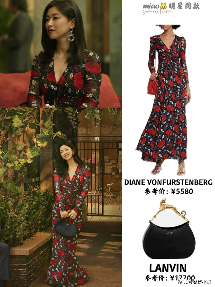 对于朱珠来说,印花连衣裙同样是她常见的穿搭之一。她选择的红色印花连衣裙,将成熟与妩媚的气质展现得淋漓尽致,修身的版型突出了她曲线优美的身材,且视觉上有显瘦效果。她也非常注重领口设计,认为合适的领口能够大大提升整体造型的美感。对于脖子较短的女性来说,过高的领口容易显得臃肿,因此低领或心形领口是更加适合多数人的选择。