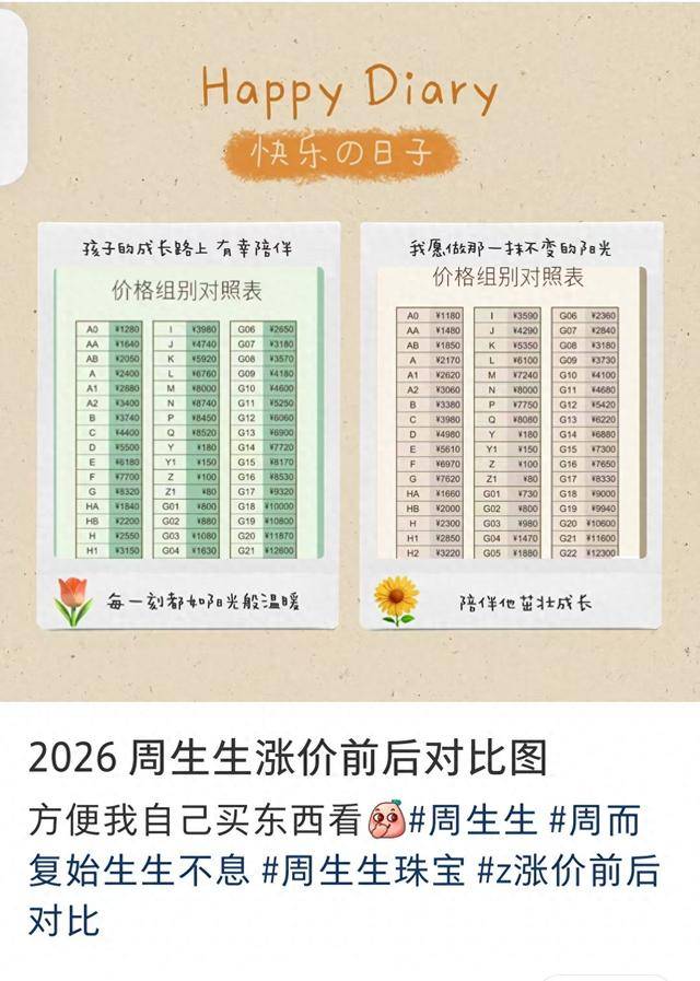 而在社交媒体上,已有黄金收藏者分享了周生生金饰涨价前后的价格对比图,引来众多热议。从该网友发布的图片来看,A组别金饰产品涨价前后价差在200元左右,G组别金饰产品涨价前后价差最高可达1500元。