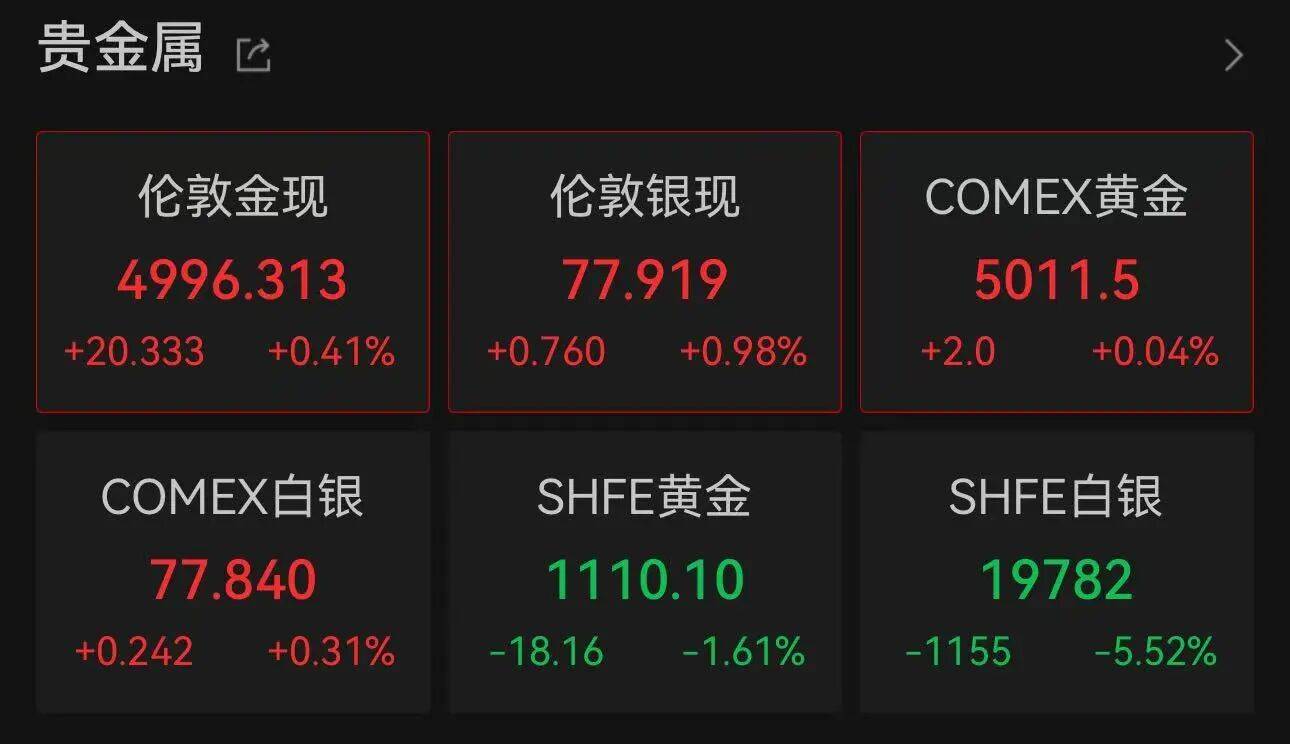 近期,国际金价持续高位震荡。Wind数据显示,截至北京时间2月19日13:52,伦敦金现货价格报4996.313美元/盎司,涨0.41%;COMEX黄金期货价格报5011.5美元/盎司,涨0.04%。