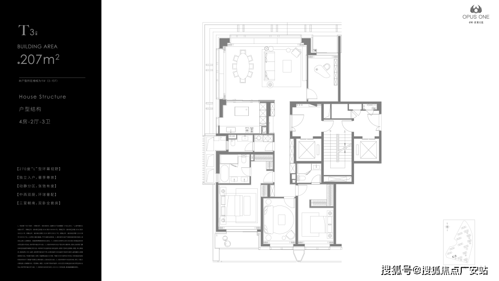 极致景观面,比如建面约195㎡北向面宽达到约12.5米,堪称IMAX观景面,和黄浦某顶豪275户型面宽数据相近。