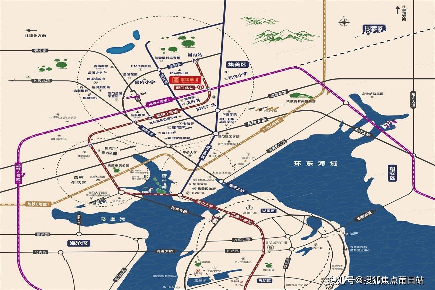 翡翠峯境所在的厦门北站商业区拥有得天独厚的交通网络,这是项目最具竞争力的优势之一。项目距离地铁1号线,同时周边还有在建的地铁4号线,形成了双地铁覆盖的便捷出行条件。伟德国际除轨道交通外,区域还汇聚了高铁铁路系统、城际交通轨道系统、快速轨道交通系统、常规公交和长途汽车客运于一体,堪称黄金交通枢纽。具体而言,项目周边3公里范围内共有7个地铁站和62个公交站,916路、923路公交车可直达圣岩路路口站和厦门北站岩内村站,后溪长途汽车站距离项目仅约500米。这种立体化的交通配置极大提升了居民的通勤便利性,尤其适合在岛内工作但预算有限的购房群体。