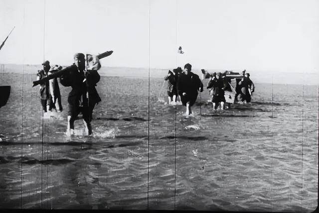 ▲1954年,尔族阿吉老人(左一)为初进柴达木盆地的勘探队员带路。(资料图)